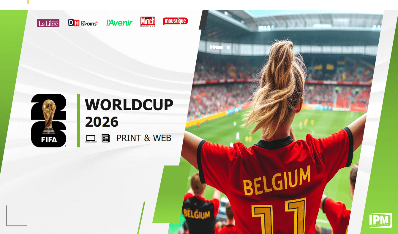 À l’occasion de la Coupe du Monde 2026, profitez d’une offre crossmedia exclusive conçue pour toucher une audience large, engagée et passionnée. Soutenue par des marques de référence telles que La DH, média incontournable du sport en Belgique francophone, ainsi que La Libre, L’Avenir, Moustique et Paris Match, cette solution assure une visibilité optimale en digital comme en print pendant toute la durée de l’événement.